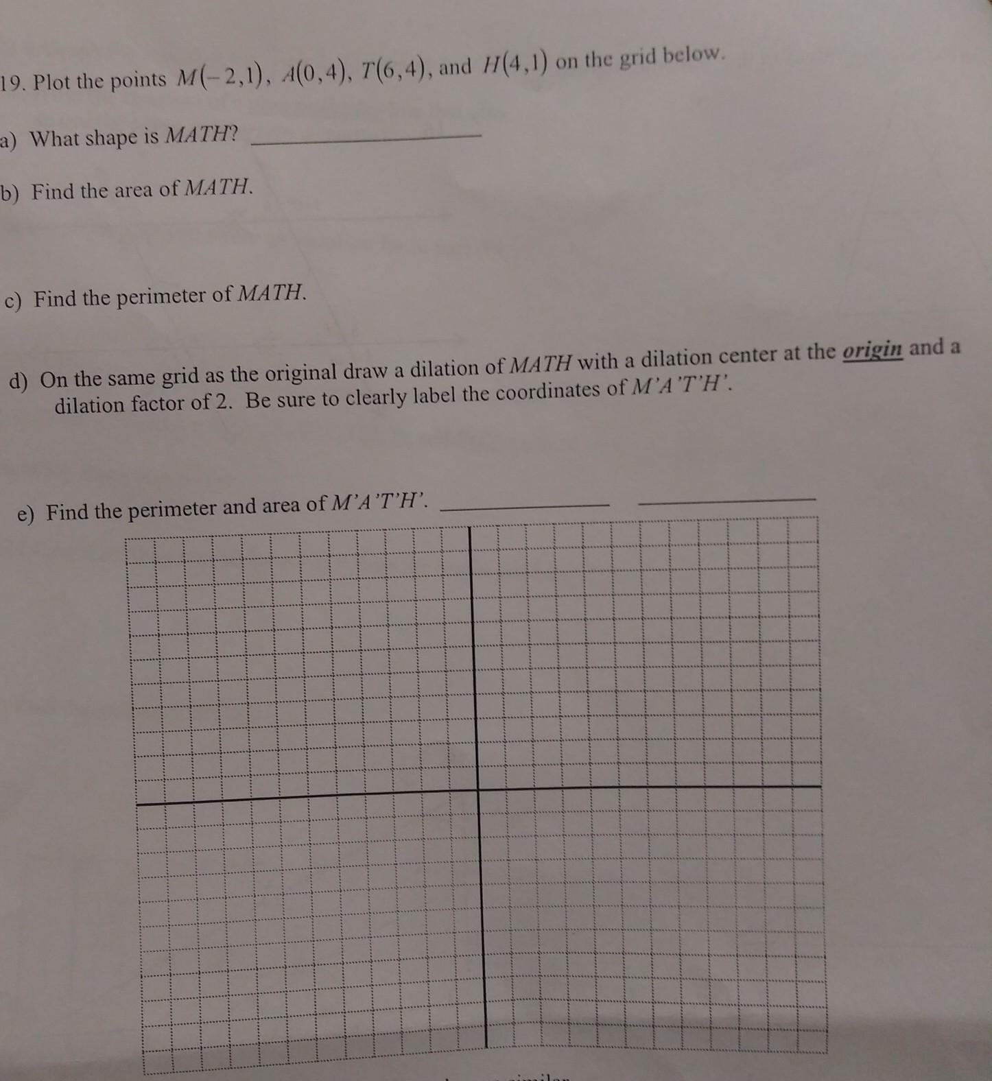 e) Since the dilation factor is 2, the perimeter is 2 times that of MATH, so is ...