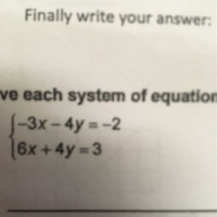 x=1/3, which makes -3x-4y=-2 become: