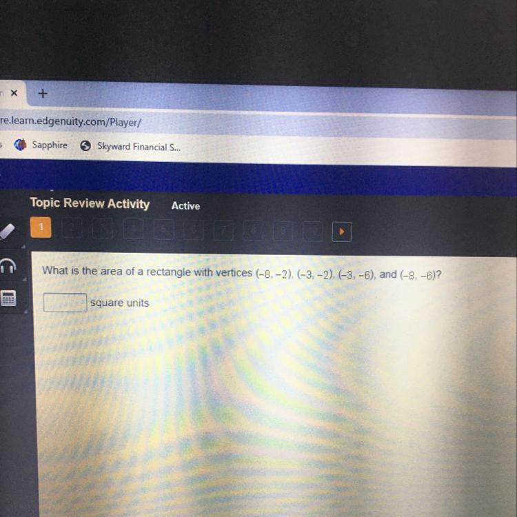 What is the area of a rectangle with vertices (-8, -2), (-3,-2).(-3,-8), and (-8, -B)?