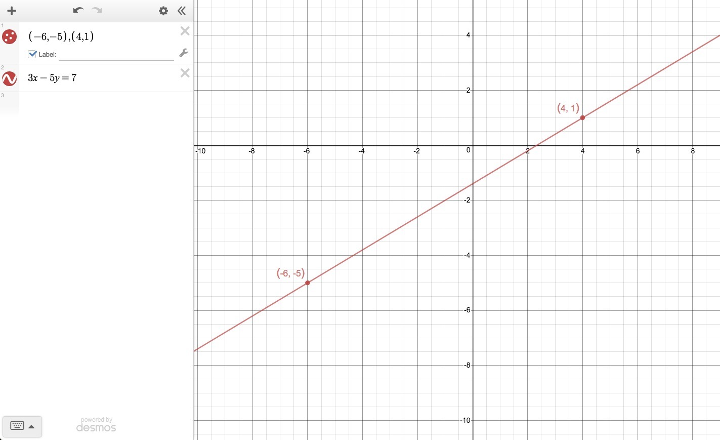 ... 3(x +6) -5(y +5) = 0 . . . using (-6, -5) for (x1, y1)