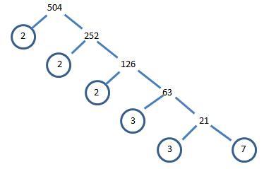All the circled prime numbers can be multiplied together to get the original number 504 back again