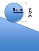 The diagram shows the side view of a cylinder rolling down a ramp. The cylinder has radius 5 cm and height 8 cm.