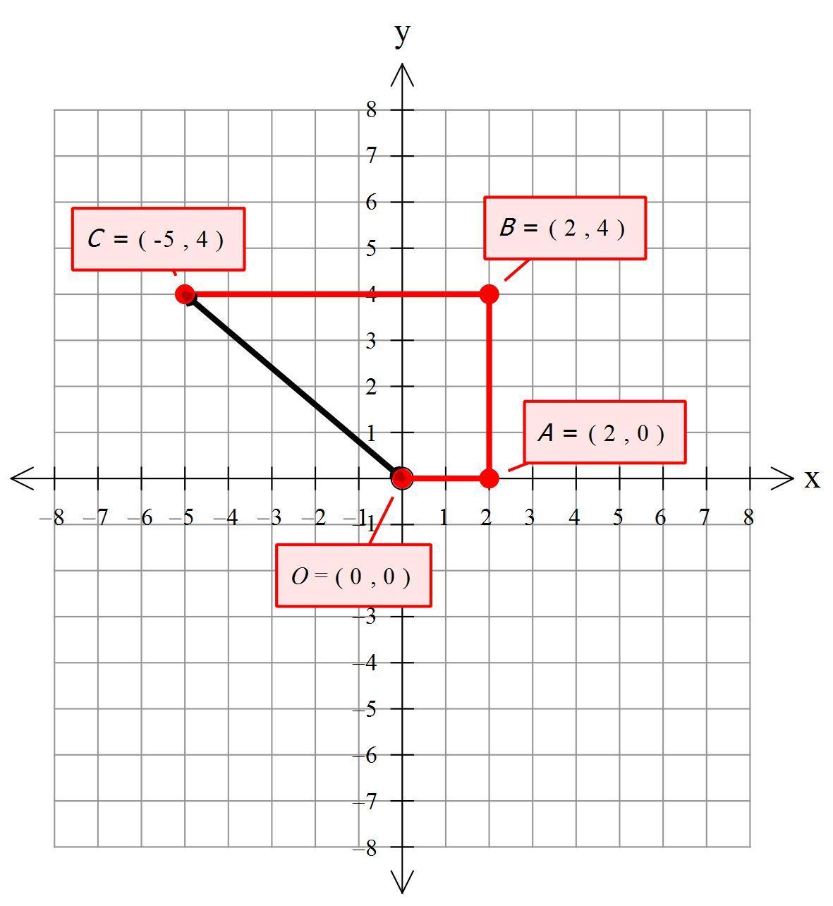 and then 7 kilometers west ⇒ arrived to point C (-5,4)