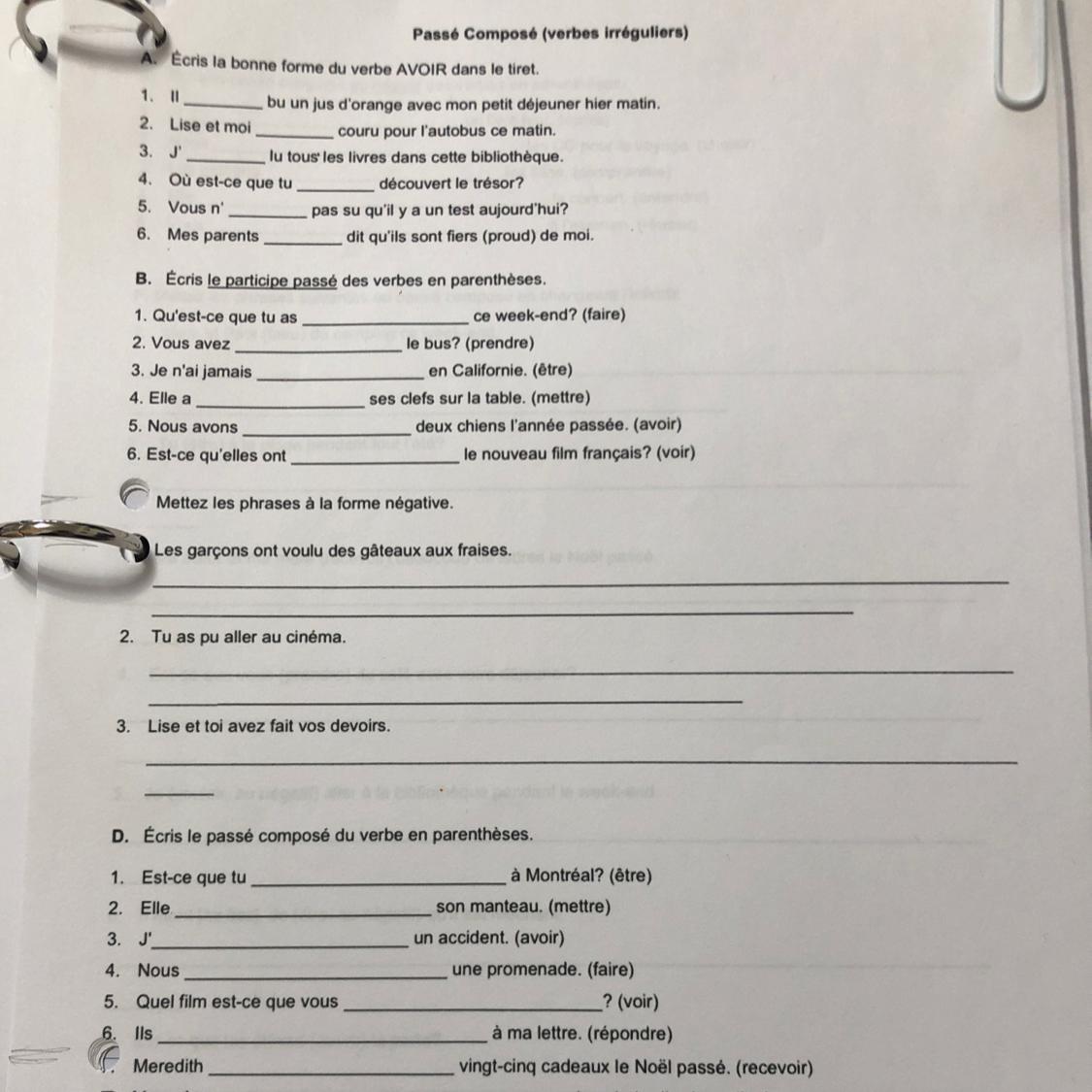 • PLS HELP, 9TH GRADE FRENCH! I am giving brainliest for correct answers!