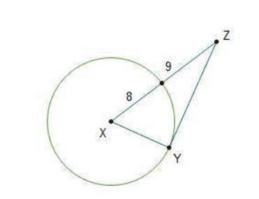 Triangle XYZ is a right triangle, because segment ZY is tangent to circle X at point Y