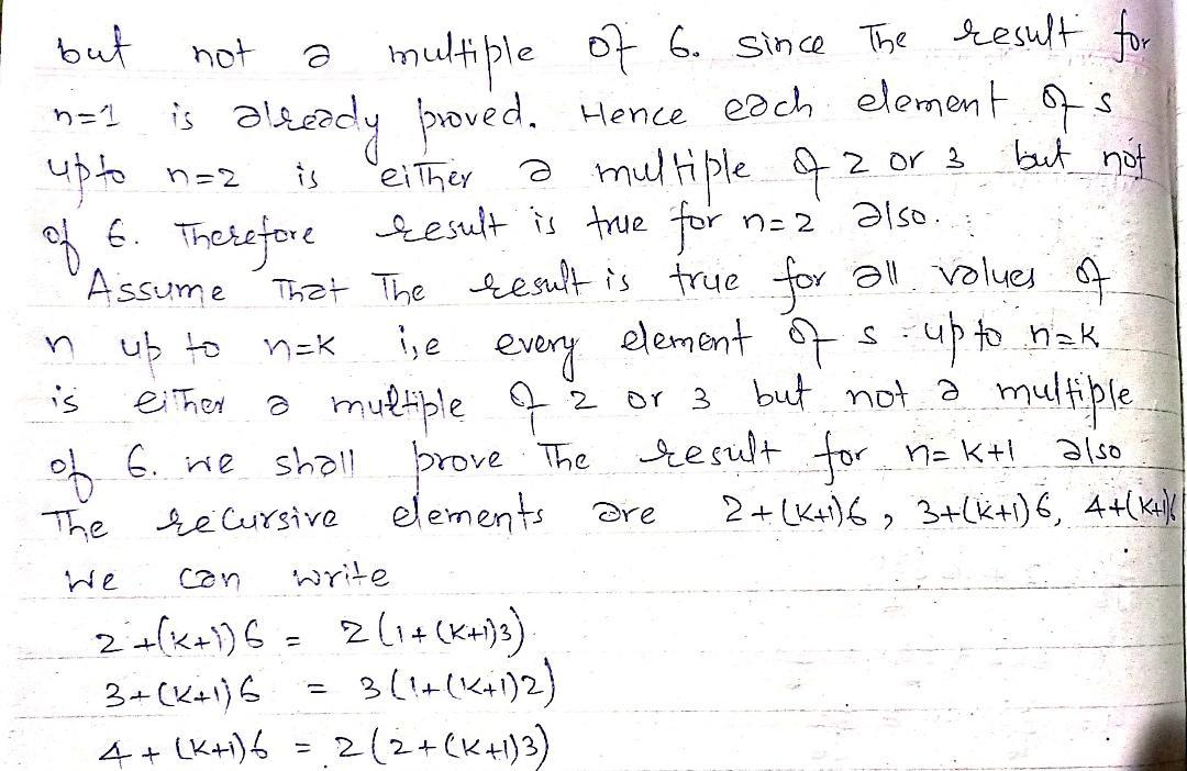 Consider the following recursive definition of a set S: 2,3, and 4 are members of S, so is 6 added to any member of S. Consider