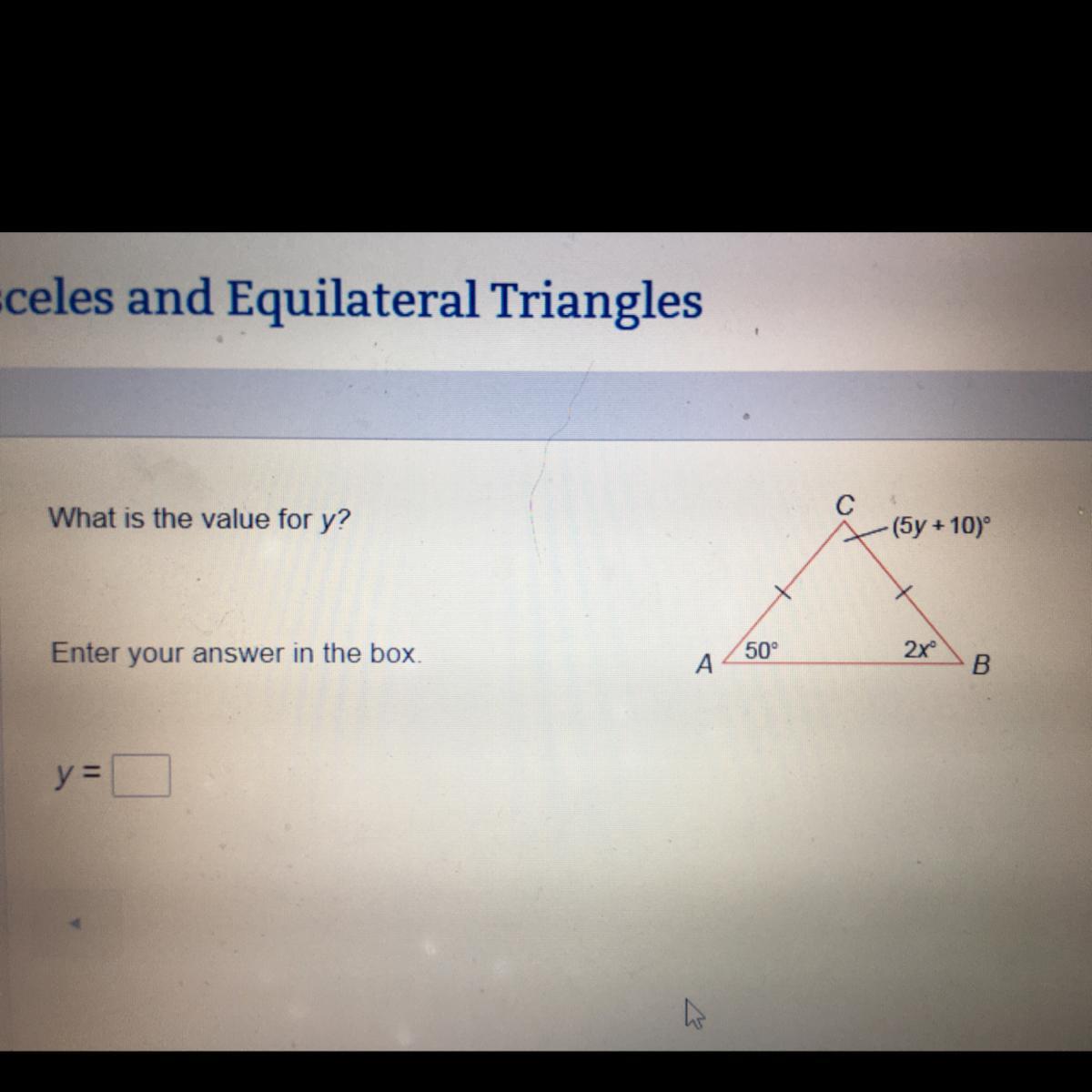 The triangle in the figure is an isoceles triangle meaning the two sides of the triangle are equal. This I know because of that short lines on line AC and CB of the triangle.