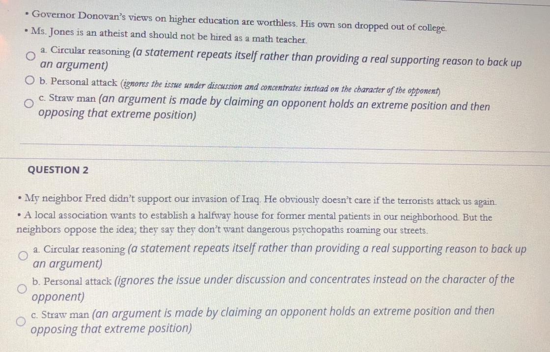 "He obviously doesn't care" is once again a personal attack and focuses on the character and not the issue at hand. "But the neighbors oppose" focuses on what the characters, the neighbors, want and not proper opposition.