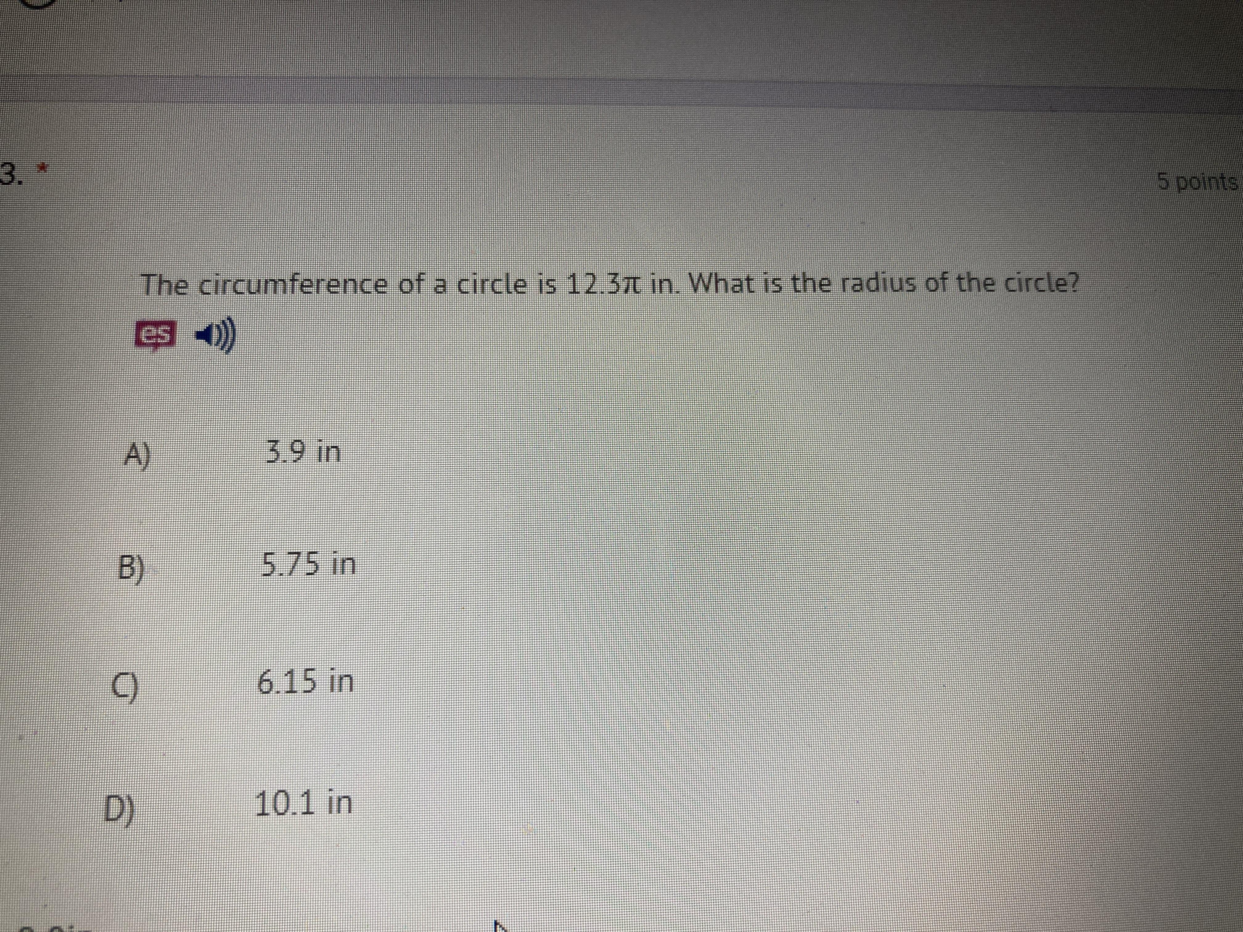 12.3π = 2πr       12.3 = 2r     6.15 = r