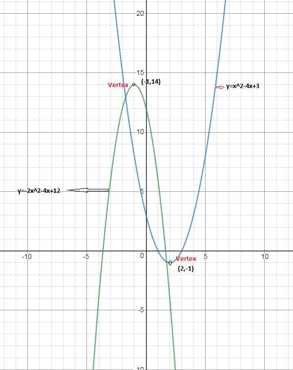 ![y= -2x^2-4 x + 12\\\\ y=-2[x^2+2 x-6]\\\\ \frac{y}{-2}=(x+1)^2-6-1\\\\ \frac{-y}{2}+7=(x+1)^2](https://tex.z-dn.net/?f=y%3D%20-2x%5E2-4%20x%20%2B%2012%5C%5C%5C%5C%20y%3D-2%5Bx%5E2%2B2%20x-6%5D%5C%5C%5C%5C%20%5Cfrac%7By%7D%7B-2%7D%3D%28x%2B1%29%5E2-6-1%5C%5C%5C%5C%20%5Cfrac%7B-y%7D%7B2%7D%2B7%3D%28x%2B1%29%5E2)