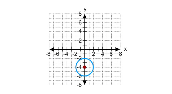 In the graph, (0,-4) is the center of circle and its radius is 2.