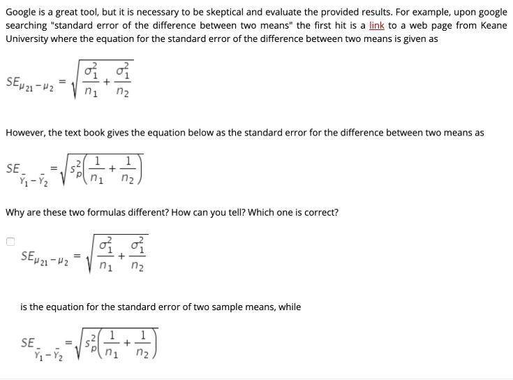 (SEμ₁ - μ₂) = √σ₁² / η₁ + σ₂² / η₂ is not wrong.