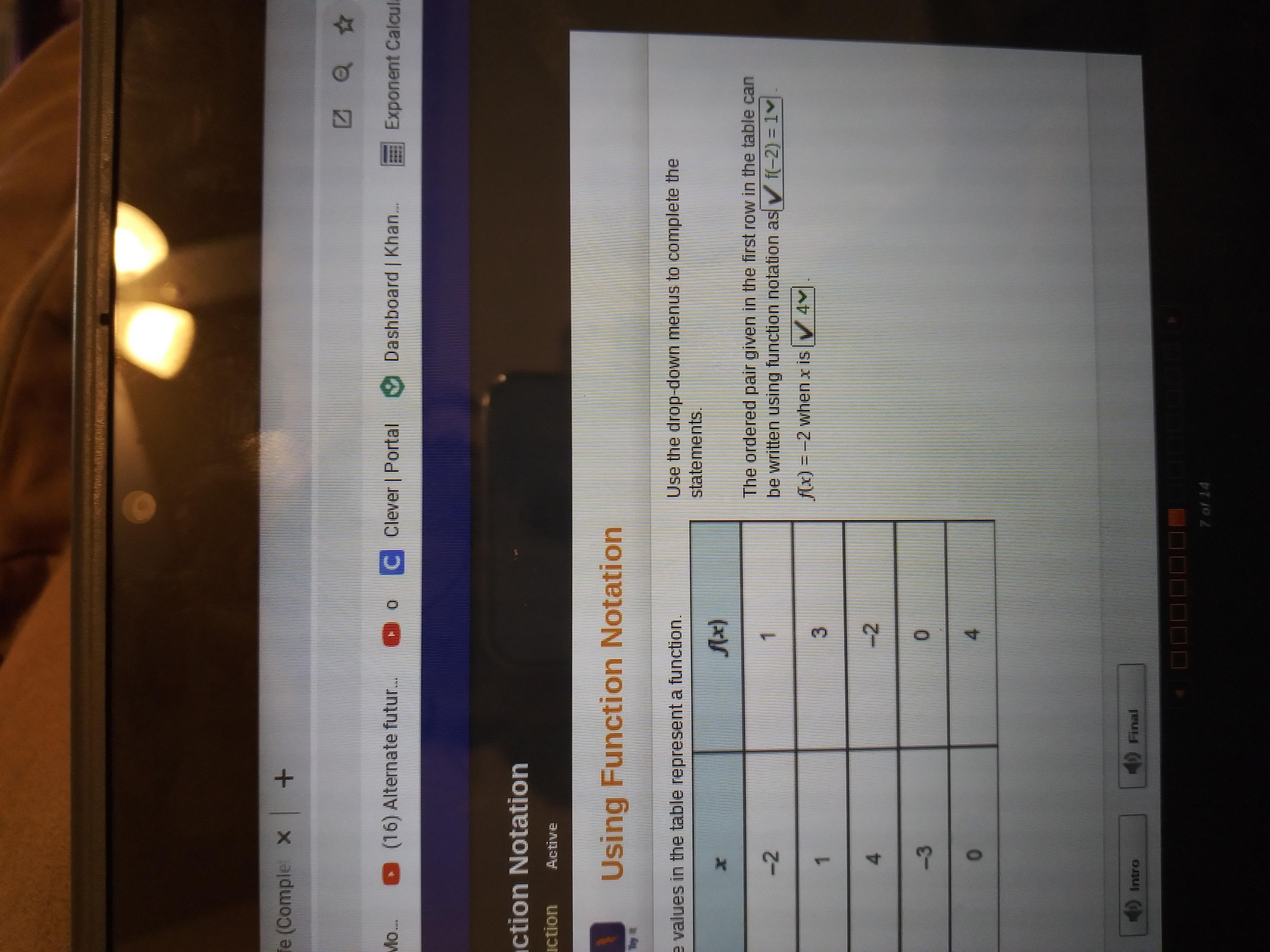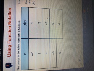 Question 1. The ordered pair given in the first row in the table can be written using function notation as?