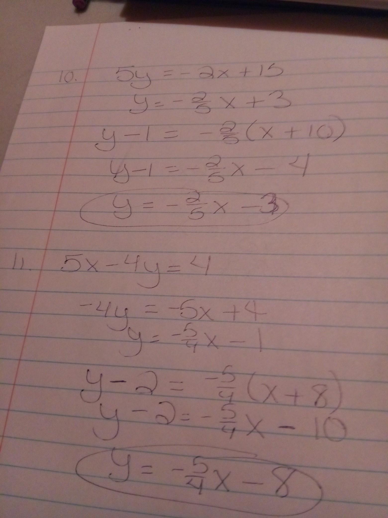 in slope intercept form, m = slope, b = y-intercept, and using those, any x and y values along the line should make an accurate equation using the form.