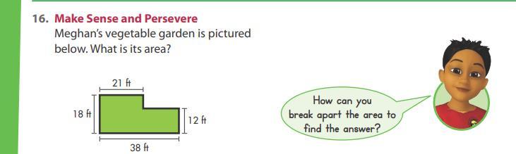 Now we can break the shape. The square will be 21 by 18 ft, and the remaining rectangle shape will be 12 by 17ft.