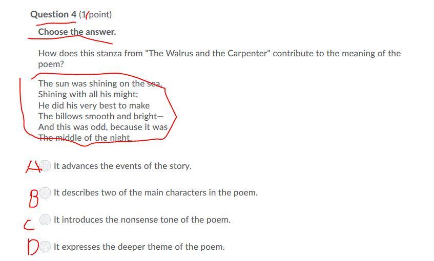 B is the correct answer because it's the only one that makes sense as one sentence. The other choices you can make into two sentences.