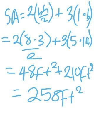 6)<br> 5ft<br> 3ft.<br> 14ft<br> 8 ft<br> I need the surface area someone help me