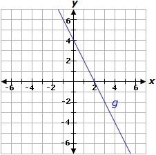 Examine the graph of g(x), we have two intercepts (0,4) and (2,0) this means slope=(0-4)/(2-0)=-2 y-intercept = 4 (y-value of (0,4) therefore the equation of g(x) g(x)=-2x+4 => slope = -2, y-intercept = 4