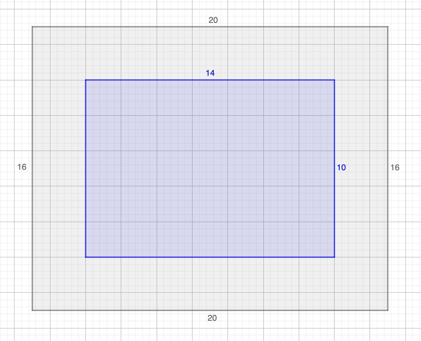 The perimeter of the concrete walk is the sum of the lengths of its outside edges. Each of those is two border-widths longer than the parallel pool dimension.