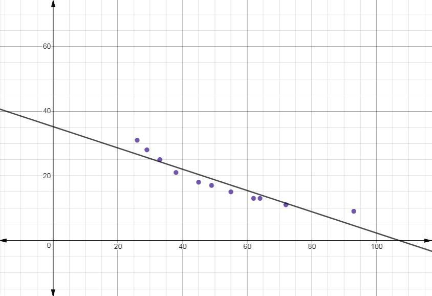 First we draw scatter plot of points on graph and then draw the best fit of line on graph.
