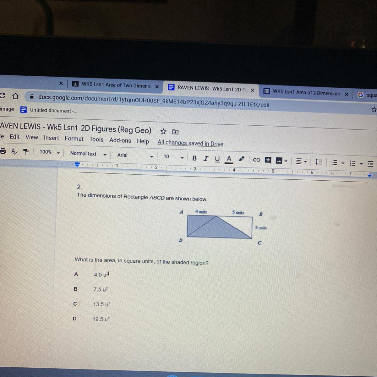The answer to your question is the letter D. 19.5 u²