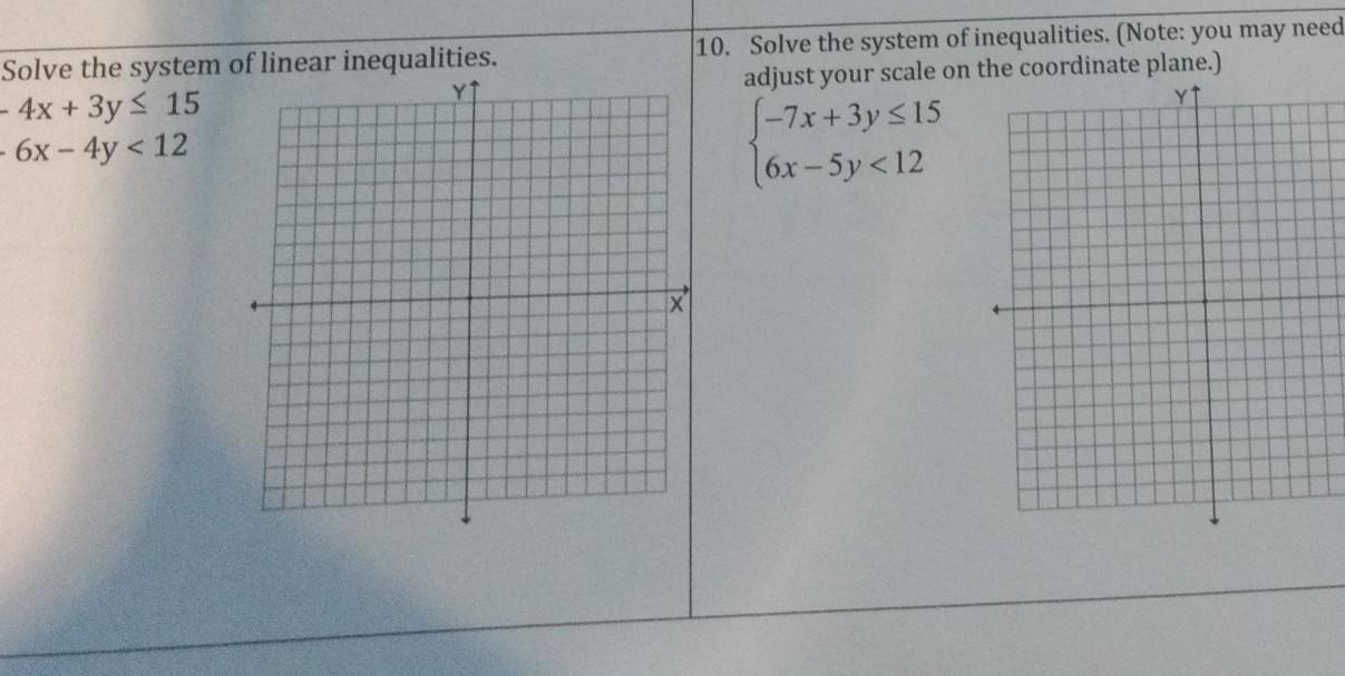 10. solve the system of inequalities (no. You may need to adjust your skill on the coordinate plane)