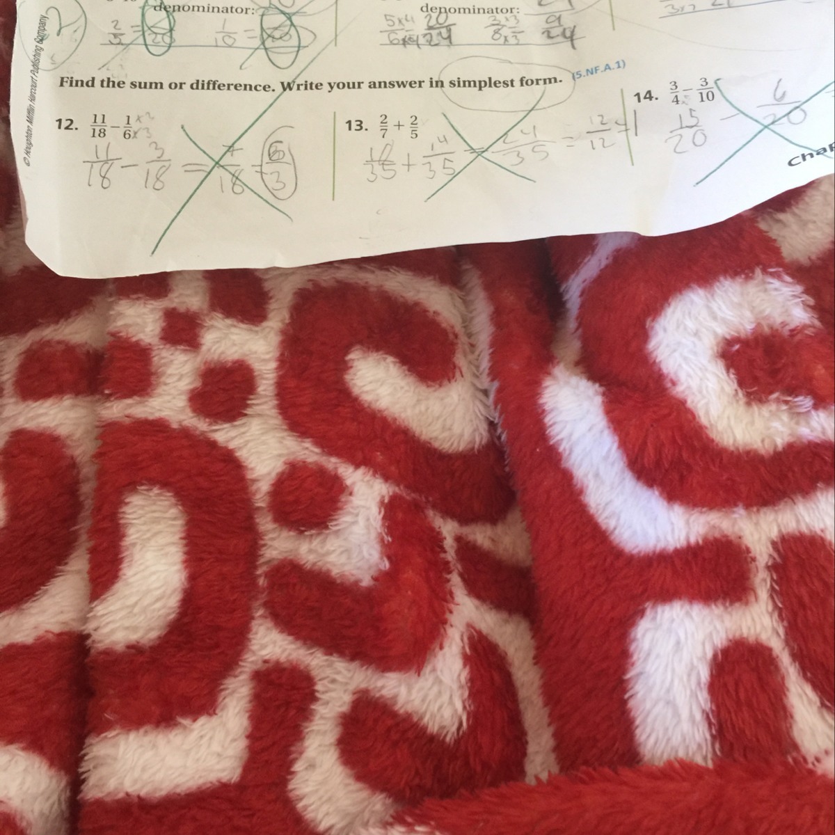 Second fraction is 2/5 which would be (2x7)/(5x7) = 14/35.