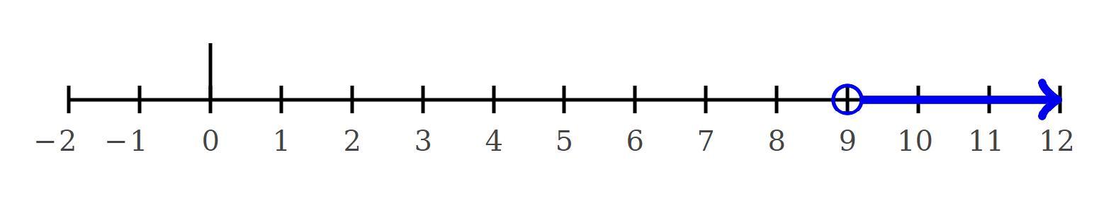 x>9 I included a picture of the number line as well