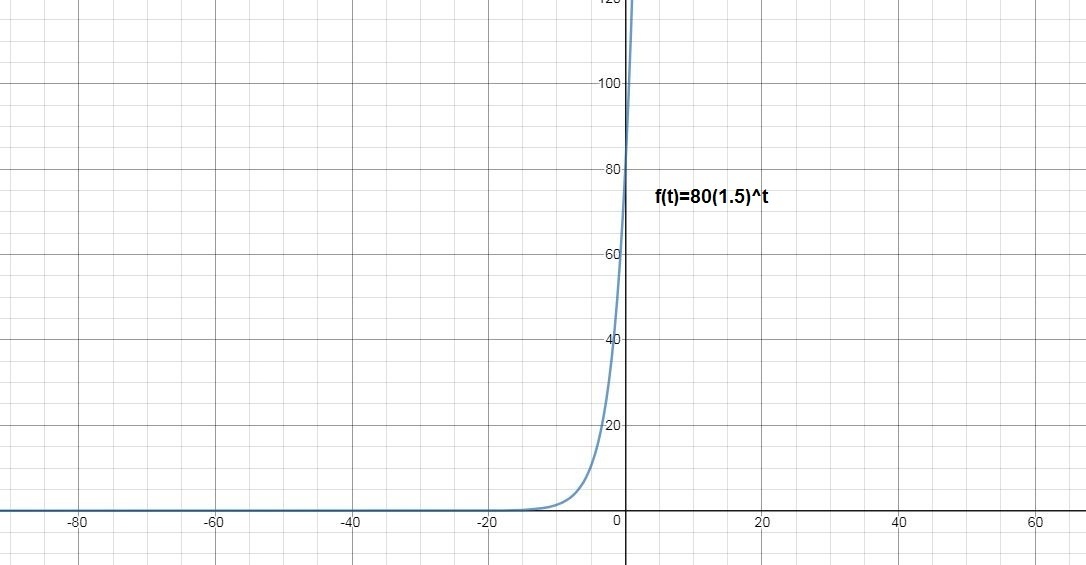 The number of trout increases by a factor of 1.5 each week and the initial population of the trout is observed to be 80.
