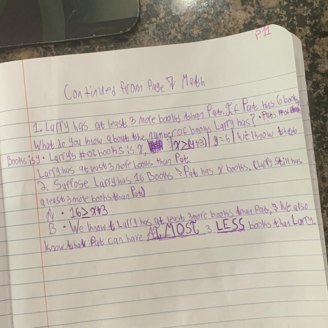 We know that Larry has AT LEAST 3 more books than Pat, and we also know that Pat has AT MOST 3 LESS books than Larry.