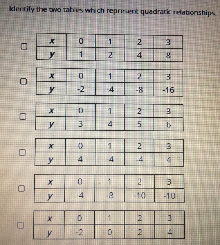Therefore, the table of Option (4) means the quadratic relationship.