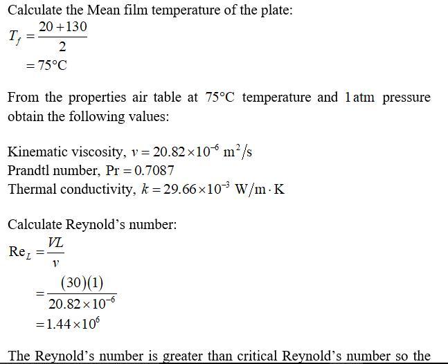Consider atmospheric air at 20°C and a velocity of 30 m/s flowing over both surfaces of a 1‐m‐long flat plate that is maintained