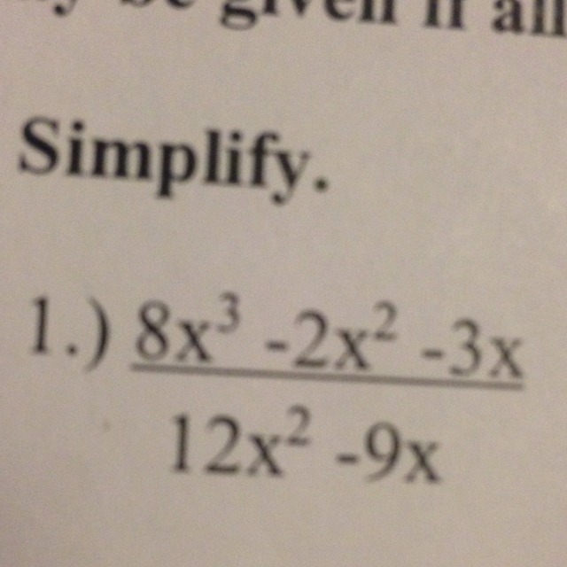 (8x³ - 2x² - 3x)/(12x²- 9x)