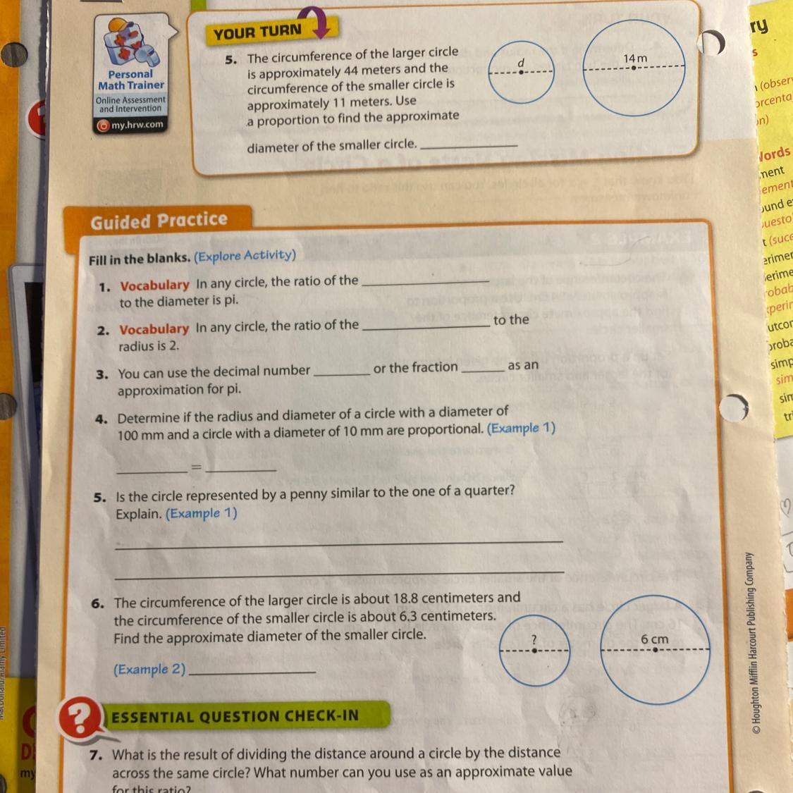 4. Determine if the radius and diameter of a circle with a diameter of 100 mm and a circle with a diameter of 10 mm are proportional.