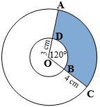 120/360 = 1/3 => The area of shaded region + mini region is (1/3)·49π = 49π/3