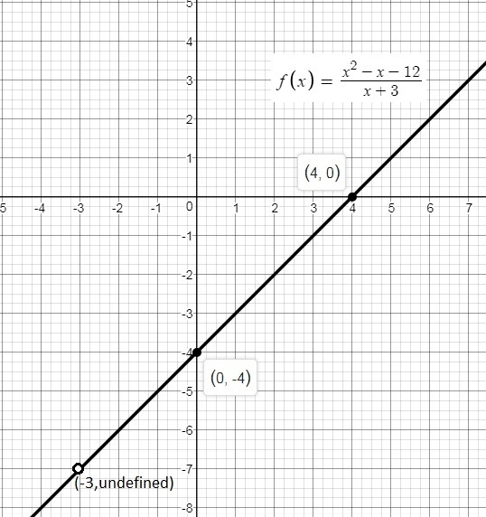 f(x)=\frac{(x-4)(x+3)}{x+3}