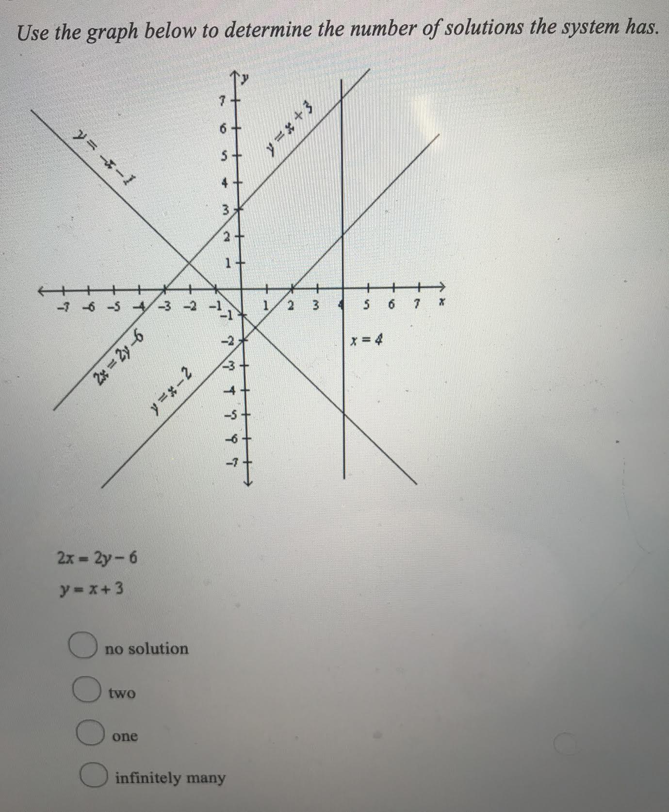 Now consider the graph of the equation 2x = 2y-6 and y = x+3