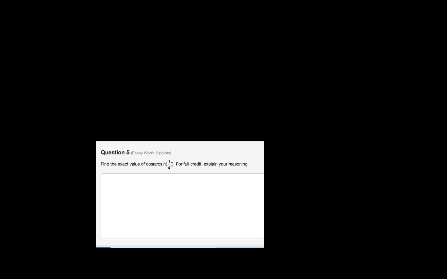 We want to evaluate cos(arcsin(1/4)) probably without a calculator.