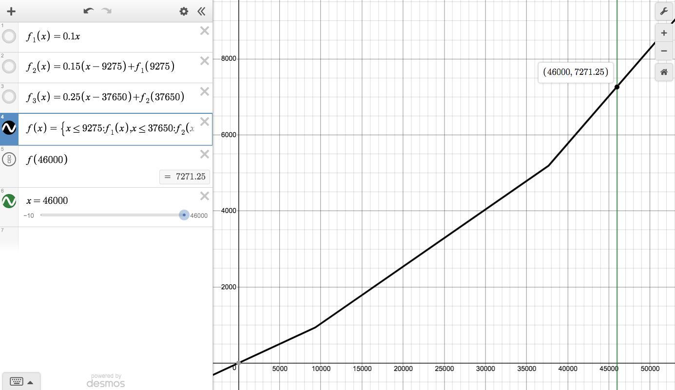 This tax rate table makes computing the tax unnecessarily complicated. For a taxable income amount of $46,000, the tax is computed as ...