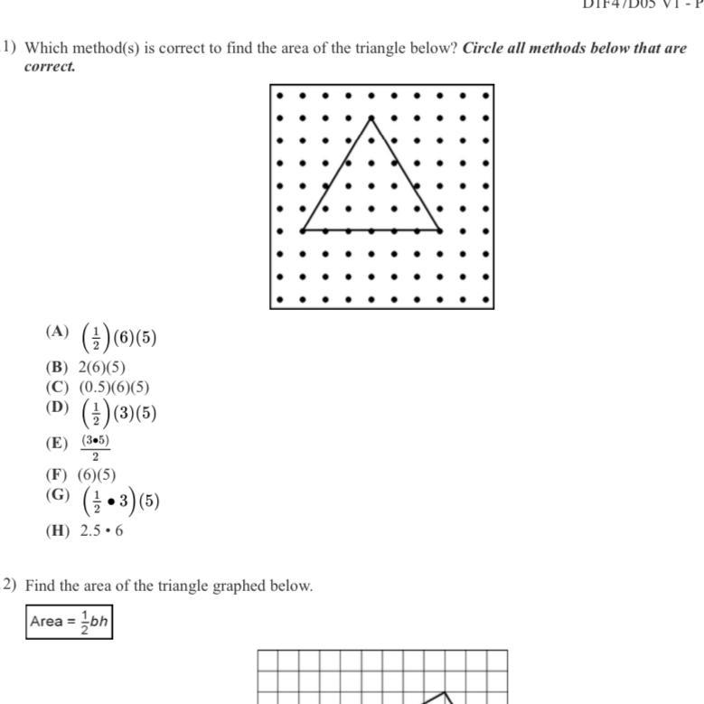 A, c, and h. Think of it as half of the total square. So all of the answers equal 15