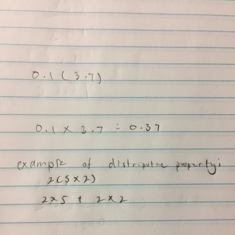 I know the answer to 0.1 (3.7) is 0.37, But can some one Justify the answer using the Distributive Property? NO fooling around o