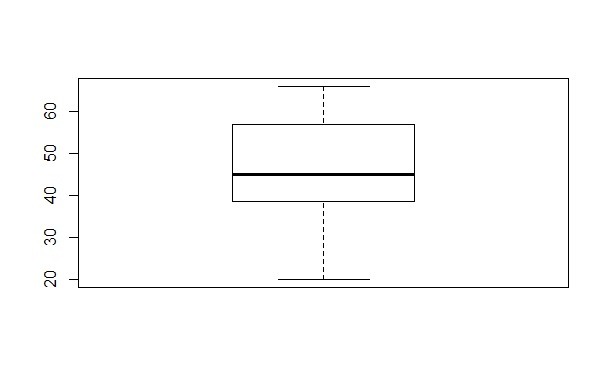 Minimum value of the data = 20, Maximum value of the data = 66, Median = 45, First quartile = 36, Third quartile = 59.