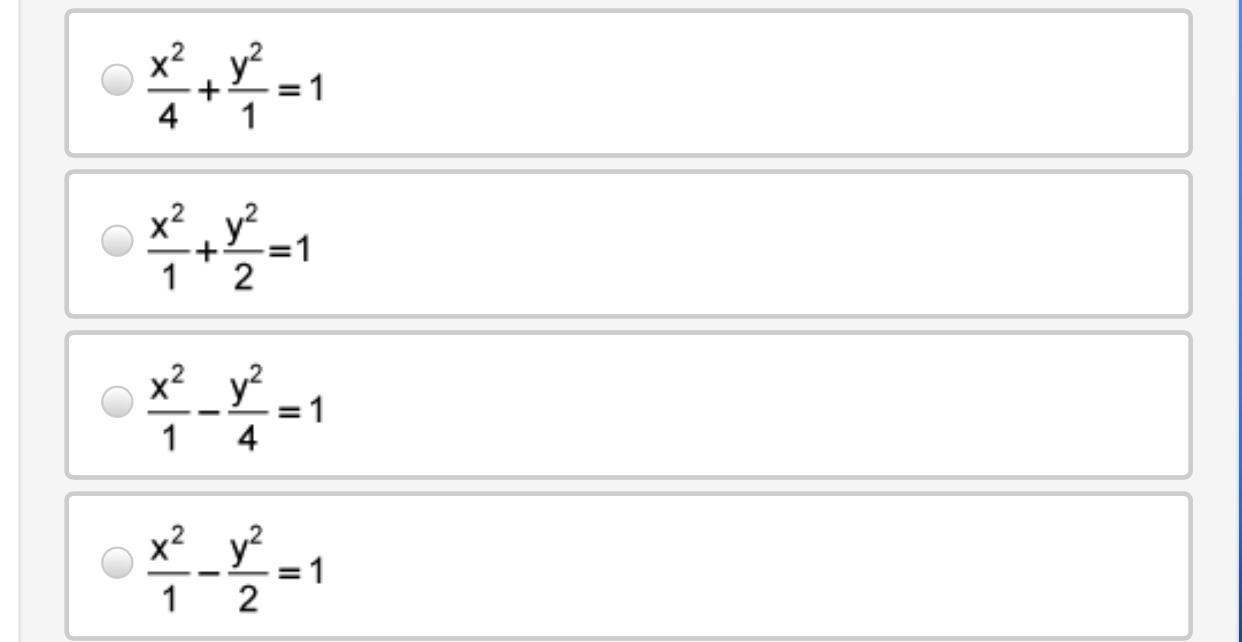 So, the eccentricity is e=\frac{\sqrt{3} }{2} and the directrices are x=(+-)\frac{2}{\sqrt{3} }, which means the first choice is not the right answer. In other words, the right answer is the second choice, because third and fourth choices don't represent an ellipse, both fractions must be positive in that case.