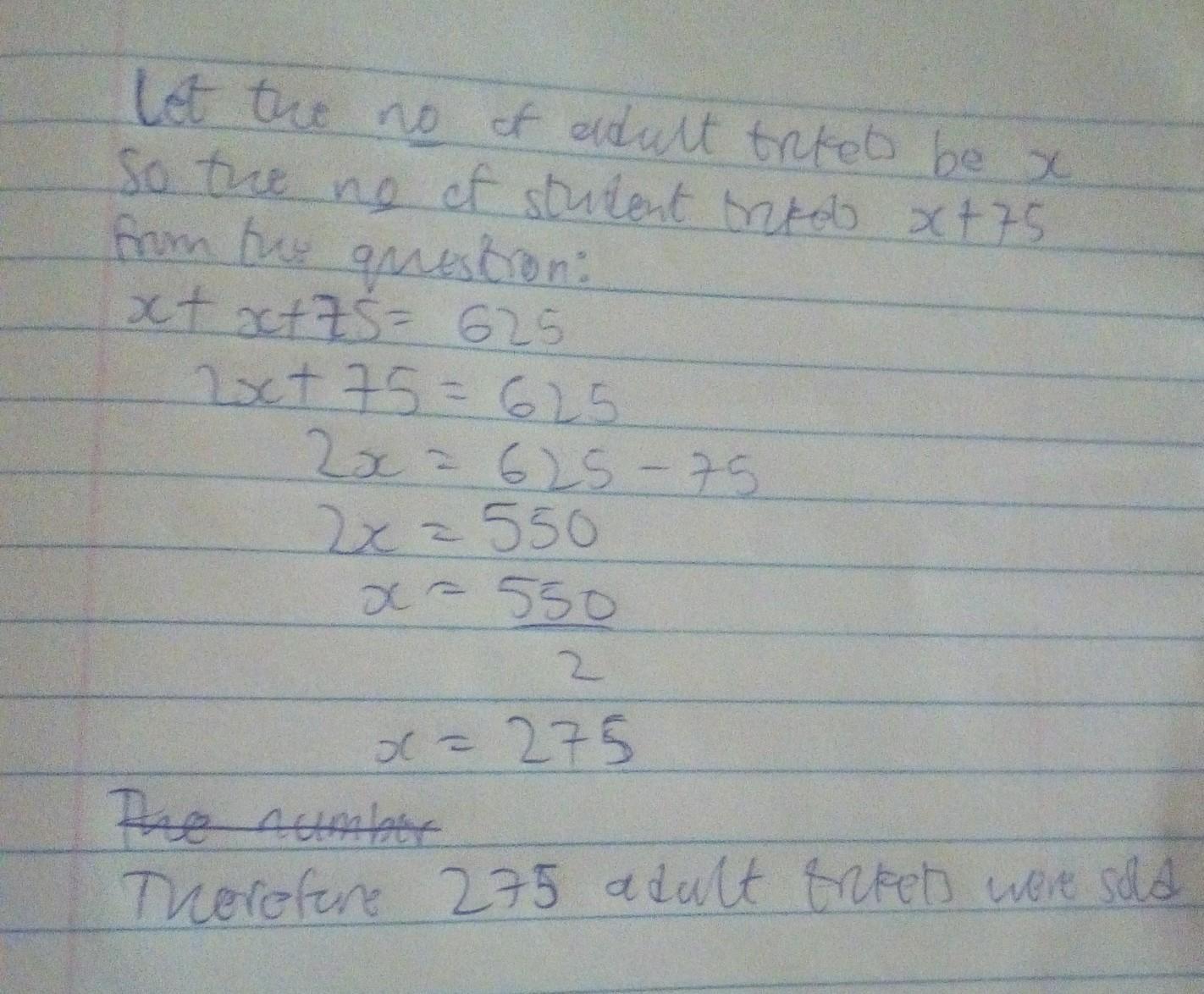 y = 2x + 5 = (2 × 1) + 5 = 2 + 5 = 7