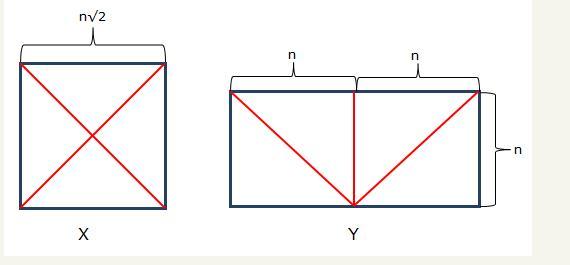 (Perimeter of X)/(Perimeter of Y) = (4n√2)/(6n) = 2√2/3, or, equivalently, 2√2 : 3