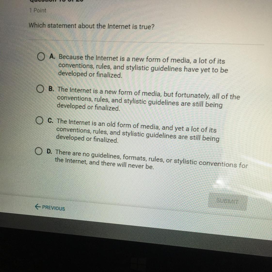 The answer is B. Internet is a new form of media, but unfortunately, all the conventions, rules, stylistic guidelines are still being developed or finalized.