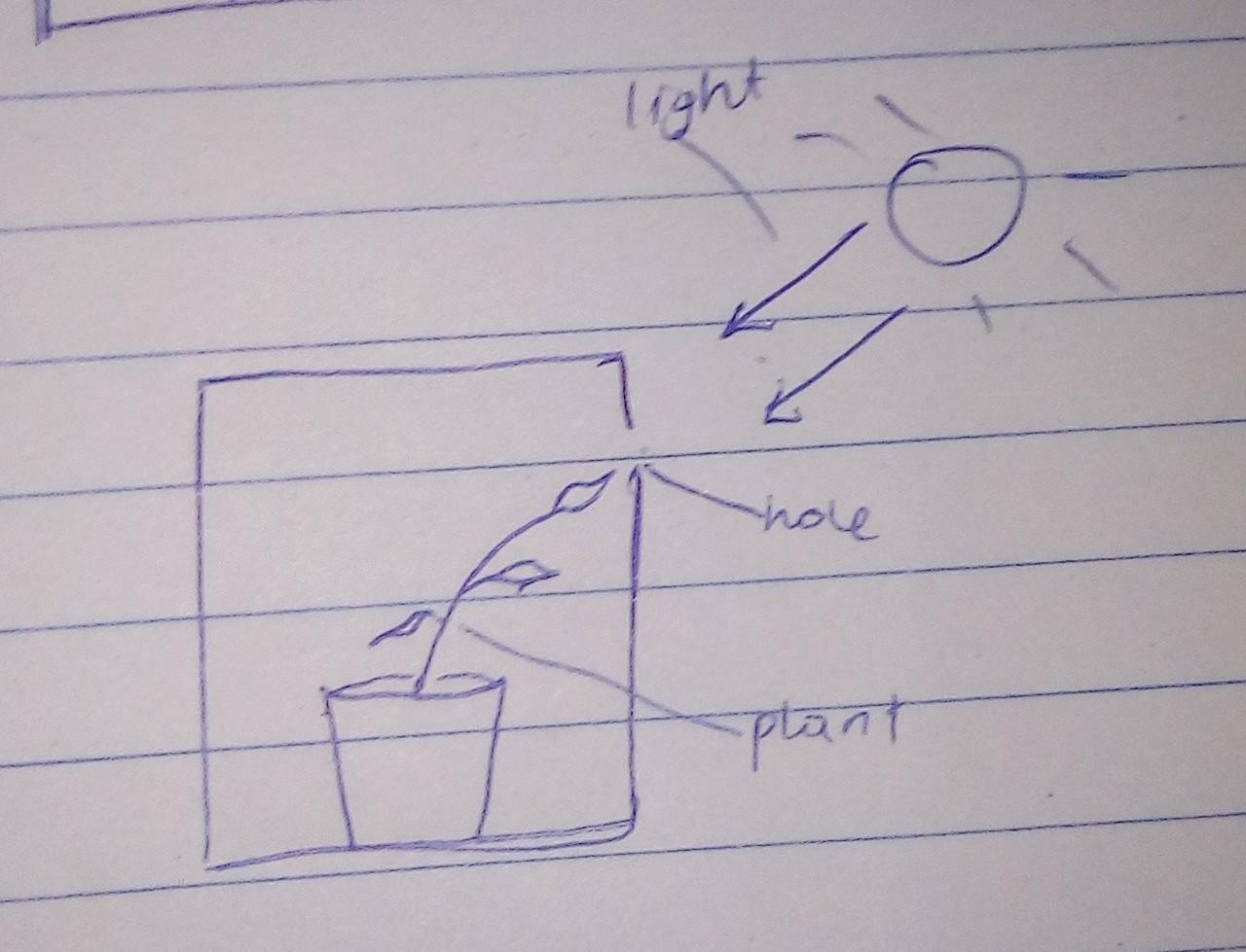 Forexample, a plant enclosed in a box with a small hole and placed in light, the tip of the plant will grow towards the hole