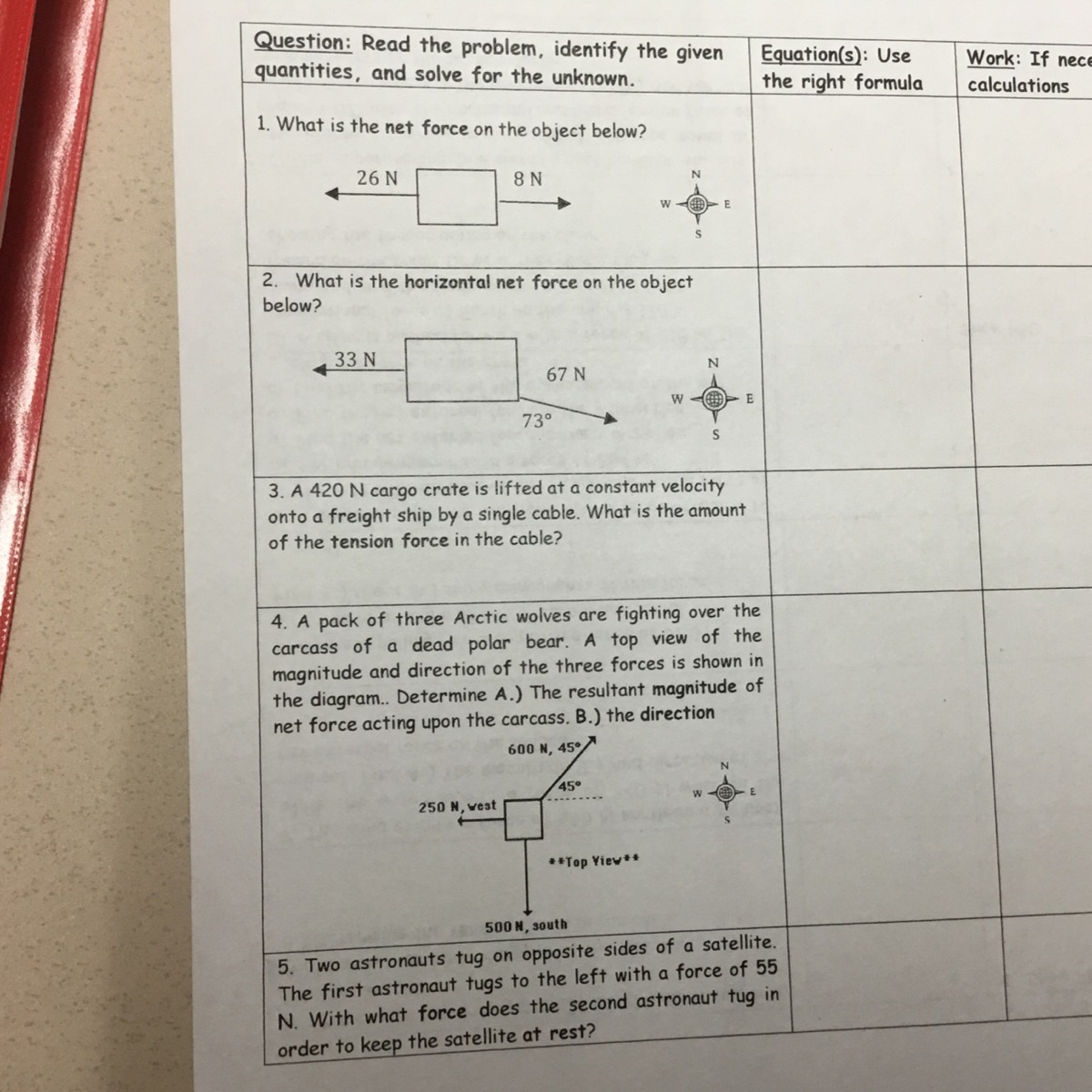 5. According to the third law of Newton, to make the balance the net force equal to zero (for each action there is a reaction with the same amplitude and in opposite direction)