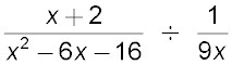 Given : \frac{\frac{x + 2}{x^2 - 6x - 16}}{\frac{1}{9x}}