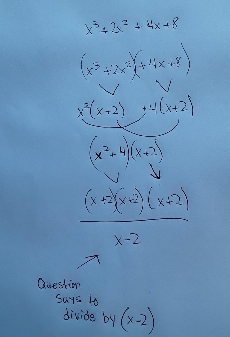 • Now let's put parenthesis around (x^3 + 2x^2) and (4x + 8)